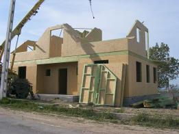 A ház hasznos alapterülete 166,79 négyzetméter, ebből a földszint 89,16 a tetőtér pedig 77,63 négyzetméter. A tetőtér hasznos alapterületénél mindig az 1,9 m feletti magasságot számoljuk. A képeken is látható, hogy a tetőtér emelt külső parapetfalas, így a hasznos alapterülete közelít a földszintihez. Külső méretek: 13 x 9 m A ház melletti dupla garázs is könnyűszerkezetes technológiával készült. A ház a második szerelési nap délutánjára volt lefóliázva.