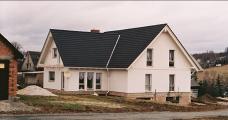 A jobb oldali képeken tetők láthatók szere-és közben. Paneles variáció esetén is ugyanolyan szelemenes szerkezetű mint a fenti fotón. A tető teherviselési szempontból szerves egységet kell hogy képezzen a fö-démmel, a falakkal, de még az alapozással is. A házak térbeli merevségét és szélálló-ságát alapvetően befolyásolják a burkolatok. Ez érvényes a födém burkolatára is amely stabilizálja a tetőt, a burkolatnak szerkezeti szerepe is van. A födém burkolatát semmiképpen nem tanácsos elhagyni. |