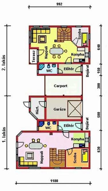Nagy alapterületű készház, könnyűszerkezetes ház. A tetőteres ikerház kocsi beállóval vagy garázzsal épült, szabadon választható volt a nyitott beálló illetve a garázs. A házak alapterülete 118 és 182 négyzetméter között van. Kérésre további fotókat és alaprajzi változatokat küldünk, a házat ötféle variációban építettük meg ugyanazon a lakótelepen. |