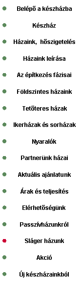 A ház legújabb változata, amely tulajdonképpen megegyezik a Sláger 98 változattal, csak annak tükörképe. Jelenleg építés alatt, a külső vakolás az időjárástól függően, de valószínűleg tavasszal. A ház megtekinthető. Előzetes egyeztetés alapján a másik két ház is megnézhető a tulajdonosokkal történt megbeszélés szerint. Olvassa el akciós oldalunkat! Érdeklődésre a házról további alaprajzokat küldünk, eddig kilenc variációban épült. |