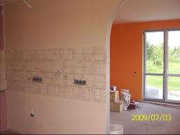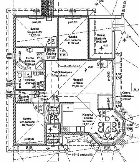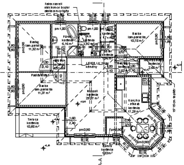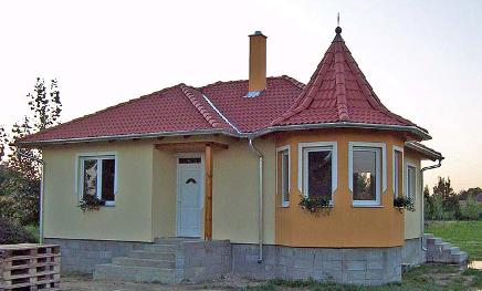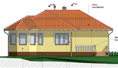A házat kulcsrakész állapotra építettük, de az alapozás és a terep rendezése a tulajdonos dolga volt. A falak már a megnövelt 23 cm-es hőszigeteléssel készültek. A házhoz kérésre alaprajzi változatot küldünk. A továbbiakban ugyanennek a háznak egy 98 négyzetméteres változata látható. |