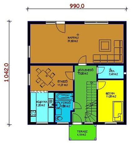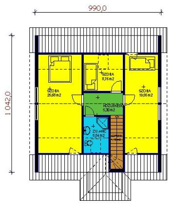 Tetőteres könnyűszerkezetes ház, a teljes hasznos alapterület 139,3 négyzetméter. Ebből a földszint 88,68 a tetőtér pedig 50,62 négyzetméter. Egyszerű és racionális elrendezésű, viszonylag olcsón megépíthető. Egyszerűsége miatt gyorsan szerelhető az előregyártott könnyűszerkezetes háztechnika következtében.