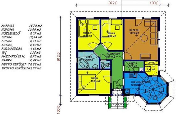 Edit 78m2 hasznos alapterületű könnyűszerkezetes készház, amely egy jól sikerült széria első házaiból való. A típusból a legelső ház még 1998-ban épült, azóta többféle variációban megépítettük, jelenleg is van hasonló építés és tervezés alatt is. A házak hasznos alapterülete 71 és 104 négyzetméter között van. Az alaprajz a telek adottságaihoz képest könnyen igazítható, tükrözhető is. Létezik olyan megépített változat is, ahol a torony hátra került. Kérésre alaprajzi változatokat küldünk. |