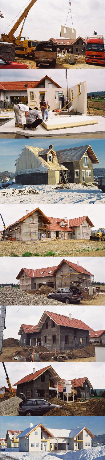 Nagy alapterületű készház, könnyűszerkezetes ház. A tetőteres ikerház kocsi beállóval vagy garázzsal épült, szabadon választható volt a nyitott beálló illetve a garázs. A házak alapterülete 118 és 182 négyzetméter között van. Kérésre további fotókat és alaprajzi változatokat küldünk, a házat ötféle variációban építettük meg ugyanazon a lakótelepen. |